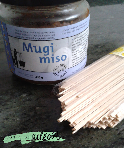 A ver... no me he vuelto loca ni se me ha ido el teclado al escribirlo. Hoy toca en el apartado "sábado de receta"... cocina japonesa!!Supongo que no soy la única que de vez en cuando le gusta comprar cosas raras para experimentar en la cocina ¿verdad? pues mi marido es igual a mí en ese aspecto y, como estuvo trabajando en una empresa de alimentos naturales, trajo un día el mugi miso, aparte de o ...