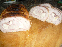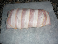 Una vez tengamos el rollo hecho lo envolvemos con tiras de bacon ahumadas.