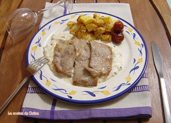 Lomo de ternera 1/2 kg. cebolla 1 unidad champiñones perejil picado nata 150 ml. yogures naturales 150 ml. limón pimienta aceite de oliva salHacemos filetitos con el lomo y doramos ligeramente en una sartén con una gota de aceite.