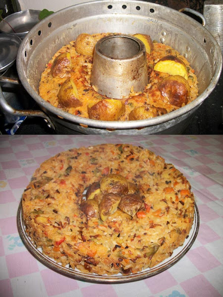 Invertir un plato grande, las sobre la cacerola de molde, sujetela juntas, sacúdala un poco y voltee.