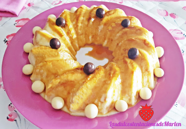 Hechar el caramelo en el molde o moldes y verter el flan.