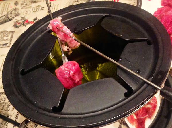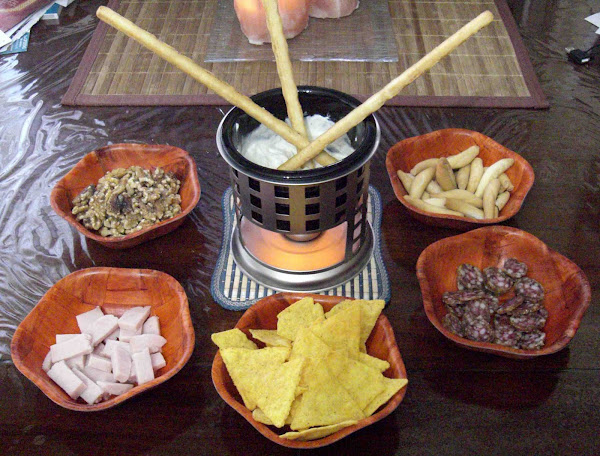 Hacía tiempo que no preparaba una fondue en casa, y buscando por internet, encontré la estupenda receta de MJ, me encantó y el día de Nochevieja la cenamos de esta curiosa manera.