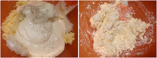 Mezcla el queso junto con la cebolla y la mayonesa.