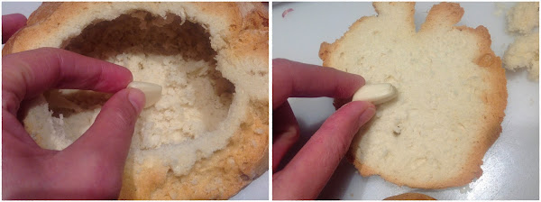 Unta con un ajo las paredes del pan (es opcional).