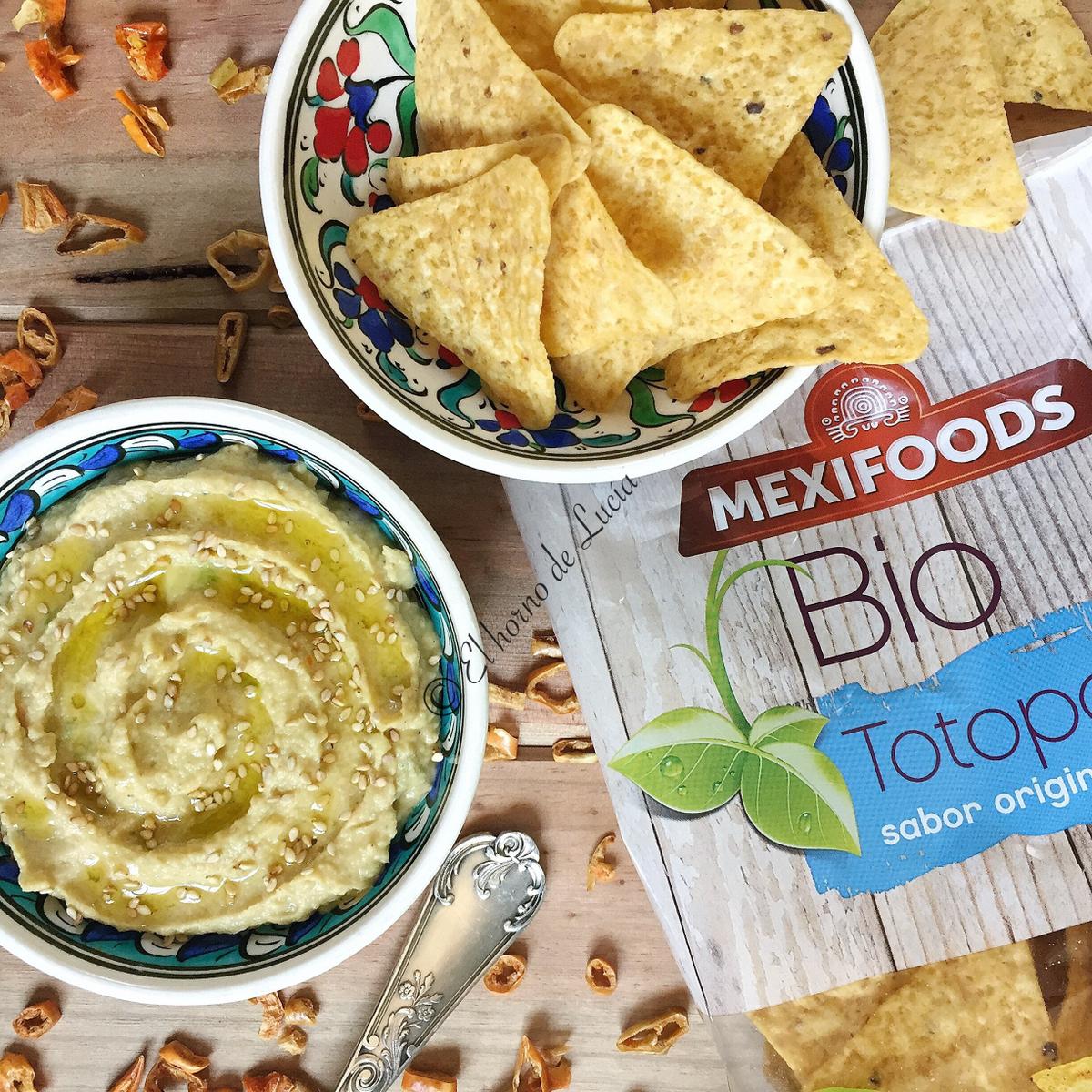 – “Totopos” o lo que vienen siendo nachos de maíz (Mexifoods): Esta marca la vengo usando desde que dejé de tomar gluten y es la que más me gusta para las tortillas de maíz. Estos nachos no los conocía, los he probado este fin de semana con este delicioso hummus de aguacate casero y están de muerte. Además son Bio y sin aceites de palma.