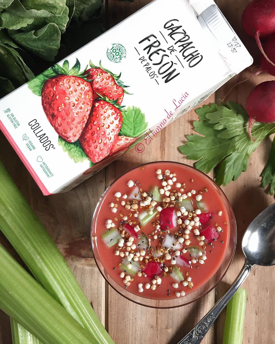 – Gazpacho de fresón (Collados Gourmet): Pues un fresquito gazpacho con fresones. Ya nos lo hemos zampado en casa, a mi me ha gustado mucho, pero para tomar en pequeña cantidad ya que carga un poco el sabor dulce que le dan los fresones, vamos que no para los tazones que estamos acostumbrados a cenarnos en casa, jajaja…