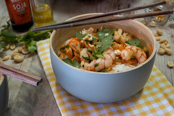 La vida es muy sosa de por si y hay que ponerle picantillo de vez en cuando para que la cosa se anime y te deje despierto del todo. Si hablamos de cocinas picantes, la mexicana, la hindú y la thai son las que más lo utilizan y quizás por eso sean tres de mis favoritas, como bien sabéis los que me seguís desde hace tiempo. aHoy nos hemos decidido por un sencillíiiiisimo plato de langostinos thai co ...