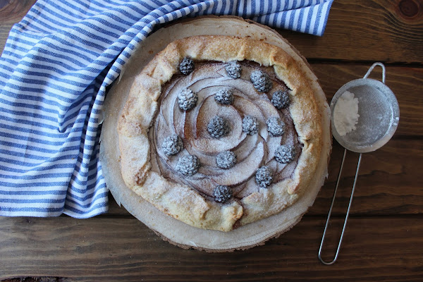 En primer lugar prepararemos un poco de cebolla caramelizada para la base de la galette. Cortar la cebolla en aros de unos 3mm y echarlos en una olla pequeña con un chorrito de aceite de oliva. Cocinar a fuego bajo hasta que la cebolla esté pochada y blanda, prestando atención a remover cada poco tiempo para que no se pegue, estará lista pasados unos 20 min, en ese momento incorporar el azúcar, remover y dejar cocinar durante unos 5-10 min más. Retirar del fuego y dejar enfriar.