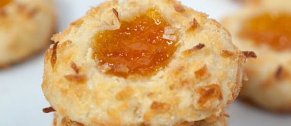 Precalentar el horno a 177ºC. Hacer pequeñas bolas con la masa. Rodar las bolas sobre el huevo batido y luego sobre el coco rallado. Con la parte trasera de una cucharadita, hacer un pequeño hoyo dentro de las bolas de masa. Rellenar el agujero con mermelada de piña. Colocar las bolas en la bandeja para hornear. Hornear por 25 minutos. Dejar enfriar por cinco minutos antes de remover de la bandeja para hornear. Dejar enfriar por completo antes de servir.