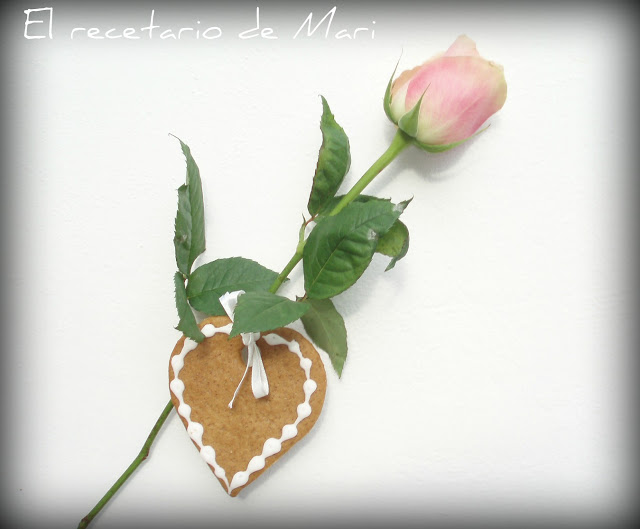 Sacamos las láminas de la nevera y recortamos con un cortapasta de 7cm en forma de corazón y con un cortapasta redondo de 1cm le haremos un agujero en la parte superior (para pasar la cinta), las depositamos en las bandejas con mucho cuidado y las llevamos al horno durante 10 minutos. Las galletas han de quedar un poco blanditas al sacarlas, dejamos que se enfríen en la bandeja durante 5 minutos y luego con la ayuda de una espátula la pasamos a una rejilla para que terminen de enfriarse.