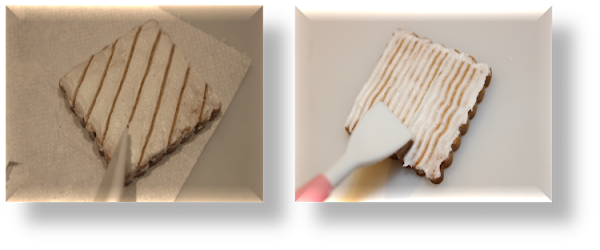 Con ayuda de una esteca o cuchillo de filo liso dibuja líneas encima de la glasa.