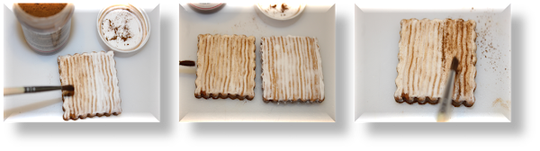 Con un pincel unta un poco de colorante en polvo y pincela la galleta hasta adquirir un tono uniforme.