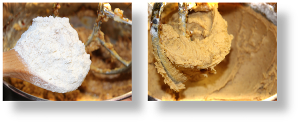 Seguidamente añade la harina mezclada con las especias e incorpora poco a poco a VEL. BAJA.