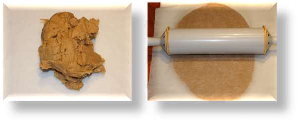 La dividí en dos partes y una la dejé dentro de una bolsa de plástico guardada en la nevera. La otra la estiré entre papel vegetal a 0,6 mm de grosor. Deja enfriar en la nevera mínimo 1 HORA.