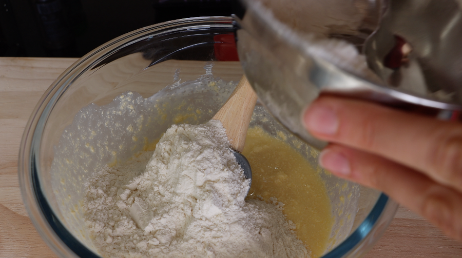 2. Mezclar harina con levadura en polvo. Añadir a otros ingredientes y formar una masa.