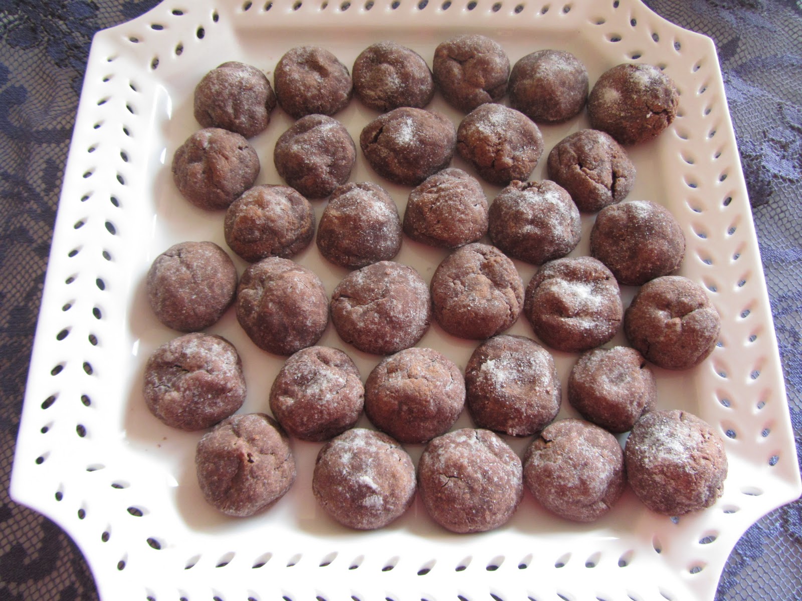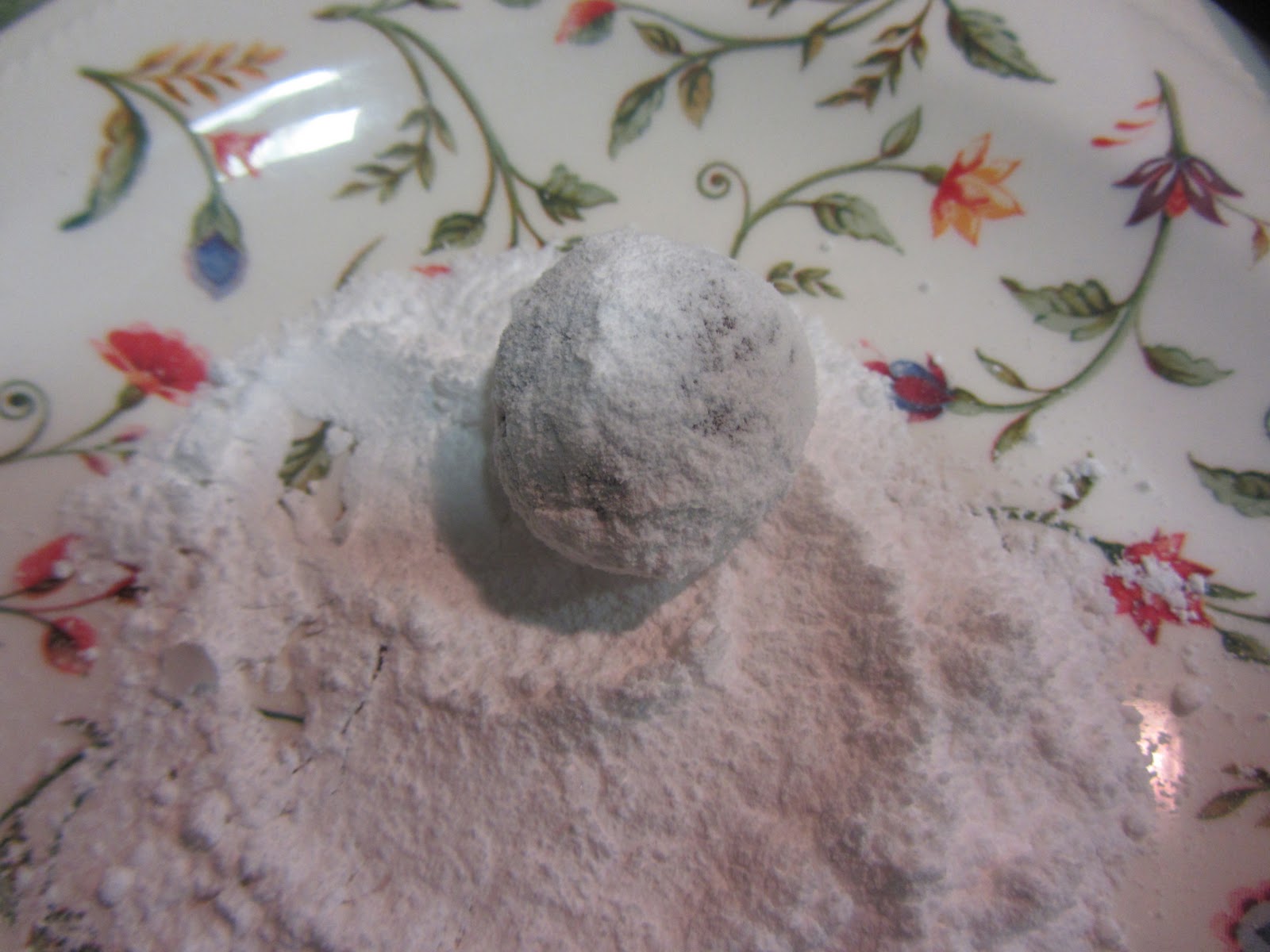 2)El azúcar glas, molido (o impalpable, como le llaman en Argentina), tiene que ser COMPRADO. Quizá sea porque el comprado lleva un poquito de almidón o maizena, que hace que la galleta no la absorba... no lo sé, pero sí lo he podido comprobar "en mis carnes". Ya habéis visto cómo deben de quedar en las fotos anteriores... bueno, pues así quedan si las rebozamos en azúcar glas molido en Thermomix: