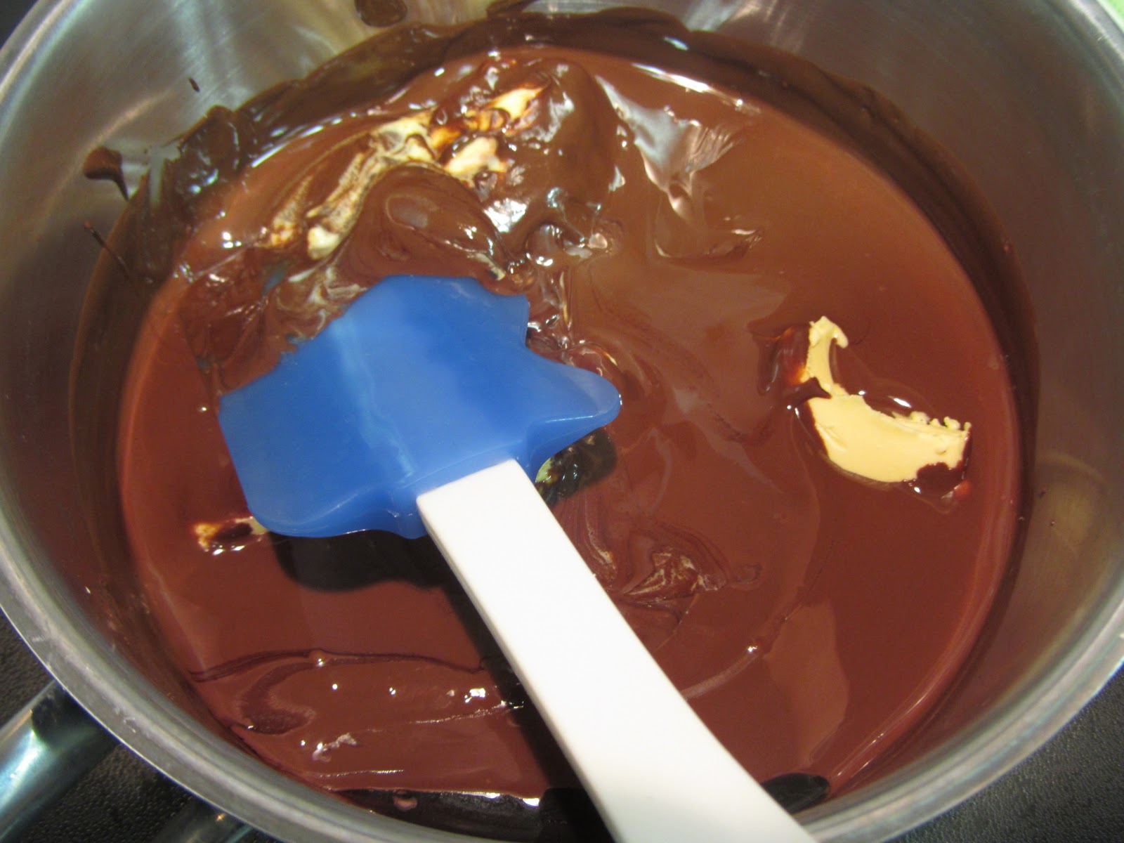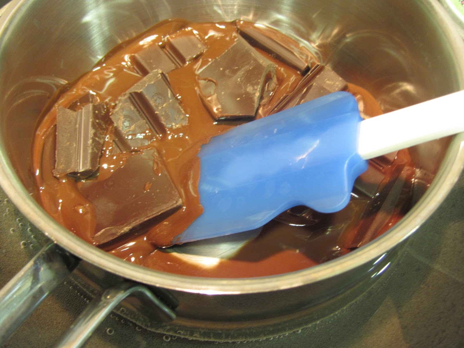 Fundimos el chocolate al baño maría (podéis hacerlo también en el microondas, pero entonces tendréis que estar muy pendientes, porque al mínimo descuido se quema).