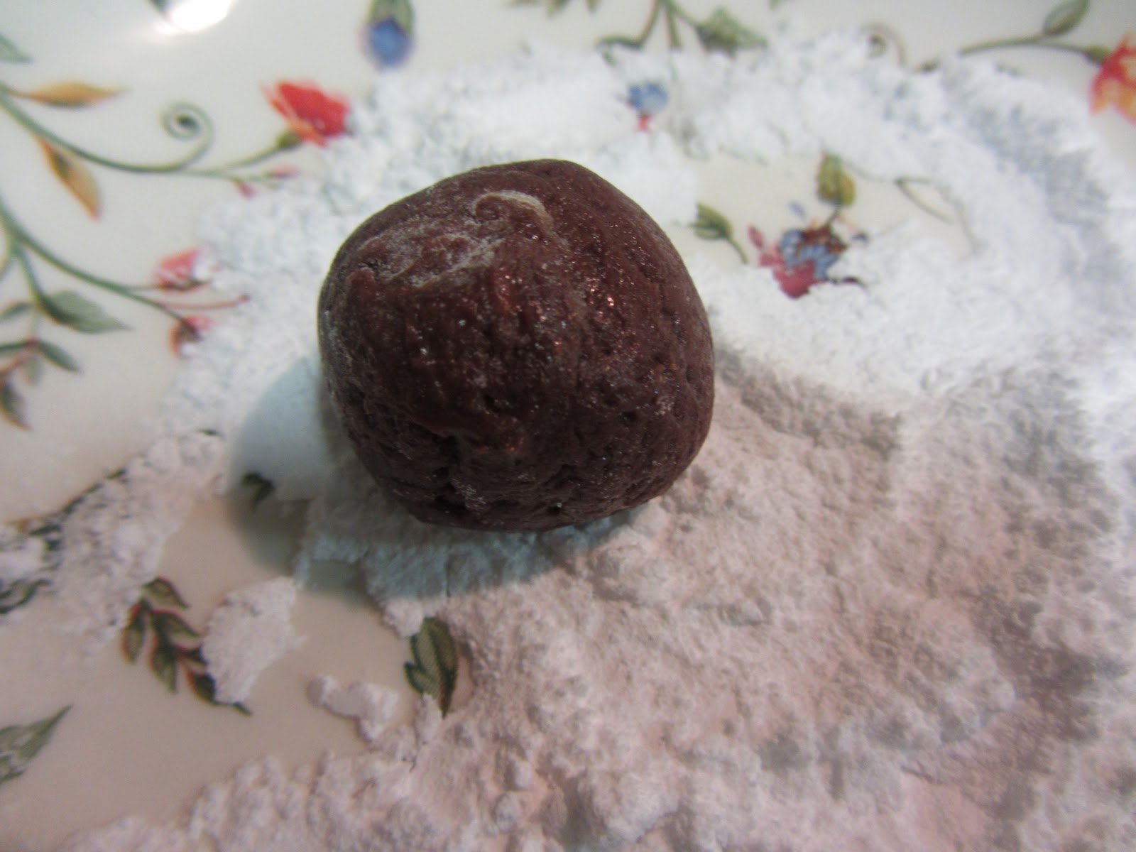Pasado ese tiempo, vamos haciendo bolitas con la masa (del tamaño de un bombón Ferrero Rocher, más o menos)...