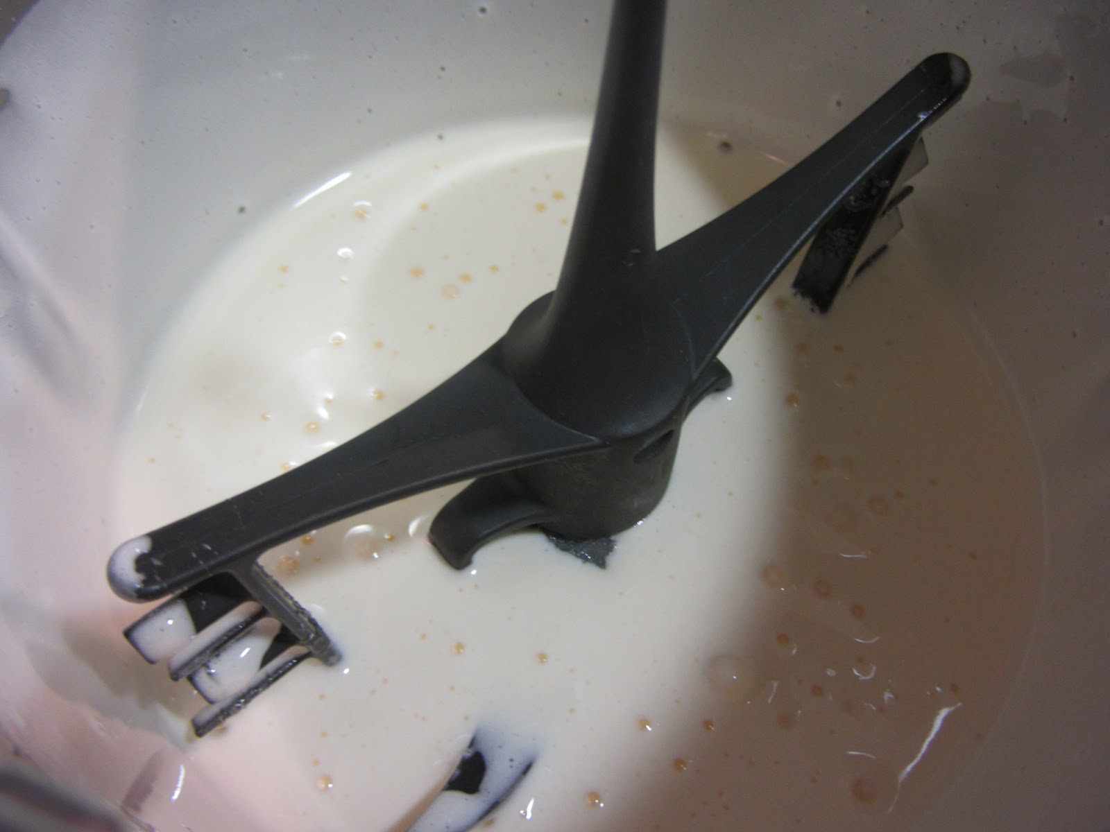 ...y la añadimos al vaso de la Thermomix. Mezclamos durante unos segundos a velocidad 3 y medio, repitiendo este paso 2 ó 3 veces hasta que quede todo bien mezclado.