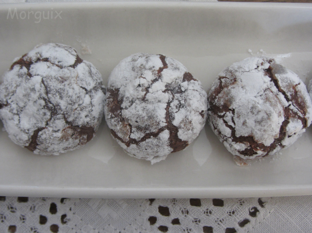 A lo que íbamos. Que sé que muchos de vosotros ya conocéis esta receta, pero hay otros muchos que no, y otros que se van incorporando a este mundo de la cocina. A todos ellos les digo: si os gusta el chocolate, y queréis disfrutar de unas galletas fáciles y resultonas en poco tiempo, ¡PROBADLAS!. No os arrepentiréis (bueno, si estáis con operaciones bikini y similares, SÍ os arrepentiréis, jajajaja).