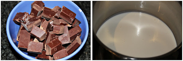 Una vez esté caliente la nata, retira del fuego y añade los trozos de chocolate a la nata.