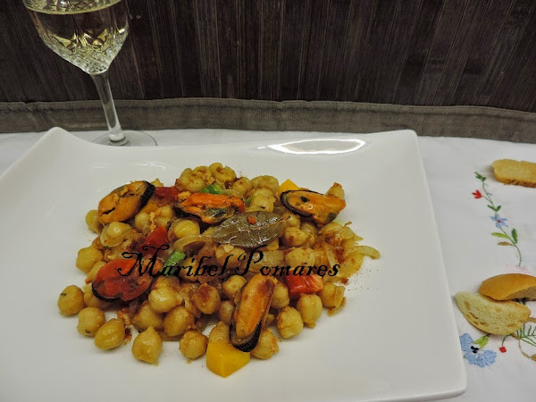 Hoy hacemos un potaje de garbanzos con mejillones que está buenísimo. Un guiso de legumbres, sencillo, barato y saludable.