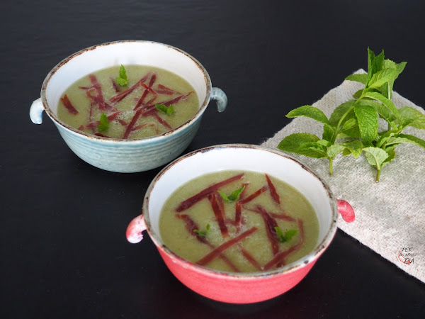 Sopa de verano, o sea fresca, sin cocción, sencilla y rápida de preparar y con productos de temporada: melón y menta, que se acompaña de un buen jamón ibérico para contrarrestar la dulzor de la fruta. Prueba esta o encuentra tu propia combinación. Ingredientes 1 kg de melón un manojo de menta fresca 60 ml de aceite de oliva un diente de ajo (pequeño) sal, pimienta negra 50 g de jamón Par ...