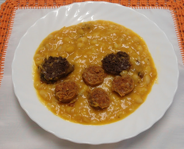 Ingredientes:1/2kl de judias blancas,1 coliflor pequeña,2 cucharaditas de pimenton dulce,1 diente de ajo,4 pimientas negras,2 clavos(especia),sal,1/2 vaso de aceite de oliva.Poner en remojo las judias doce horas antes.En una olla expres colocar las judias, el aceite y el pimentón, cubrir con agua dos dedos por encima de las judias, tapar y cocer a partir de que suene el vapor 15 minutos, destapar ...