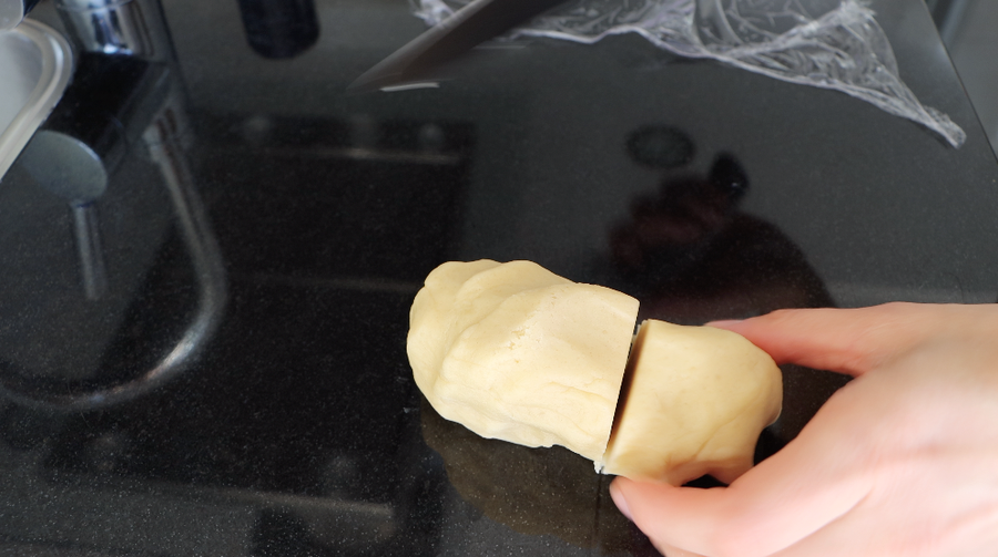 1. Batir la mantequilla ablandada con el azúcar, la sal y vainilla. Agrega el huevo y vuelve a batir. Agregue levadura en polvo y la harina. Amasar la masa. 1/3 de la masa dejar en el congelador y el resto al refrigerador.