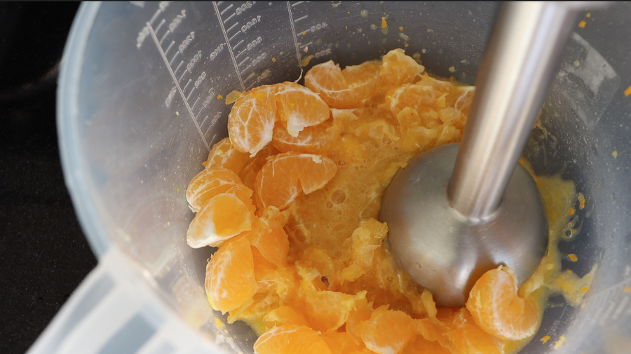 2. Batir las mandarinas peladas (también de semillas) con una licuadora. Agrega azúcar y almidón. Cocine a fuego medio hasta que espese. ¡Después de enfriar, el relleno se vuelve más espeso!