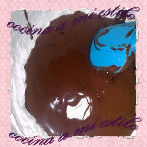 Añadir la mezcla de leche y chocolate a los huevos y remover rapido para que no se cuaje, luego volver a meter en el fuego hasta que se espese un poco pero siempre removiendo y fuego muy moderado. Batir la nata y añadirle la mezcla anterio cuando este fria