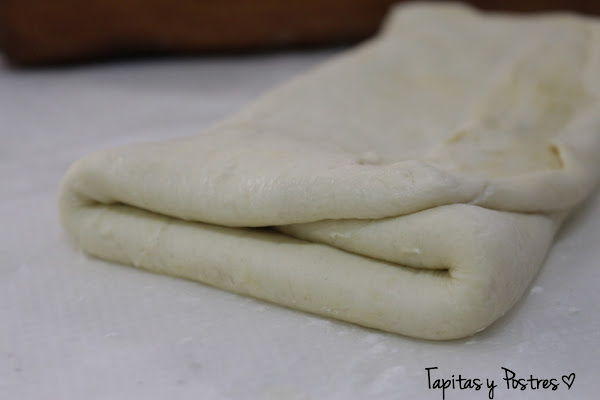 - Estiramos la masa en dos direcciones perpendiculares, sin que la mantequilla nos salga por ningún sitio.