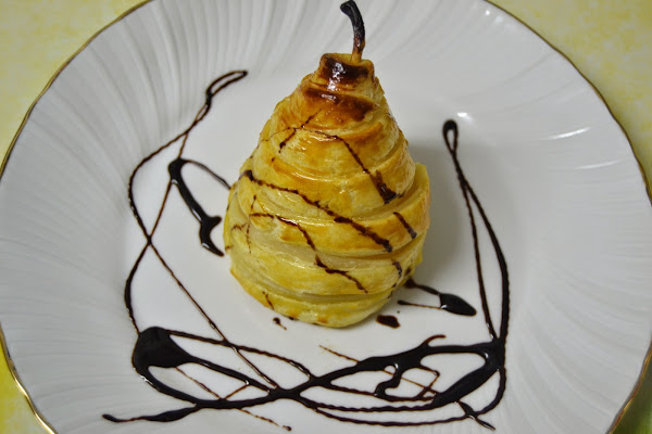 Poner las peras sobre el Hojaldre y esparcir unos cuantos Piñones por encima. Hornear de nuevo unos 10-15 minutos hasta que esté dorada la Tarta.