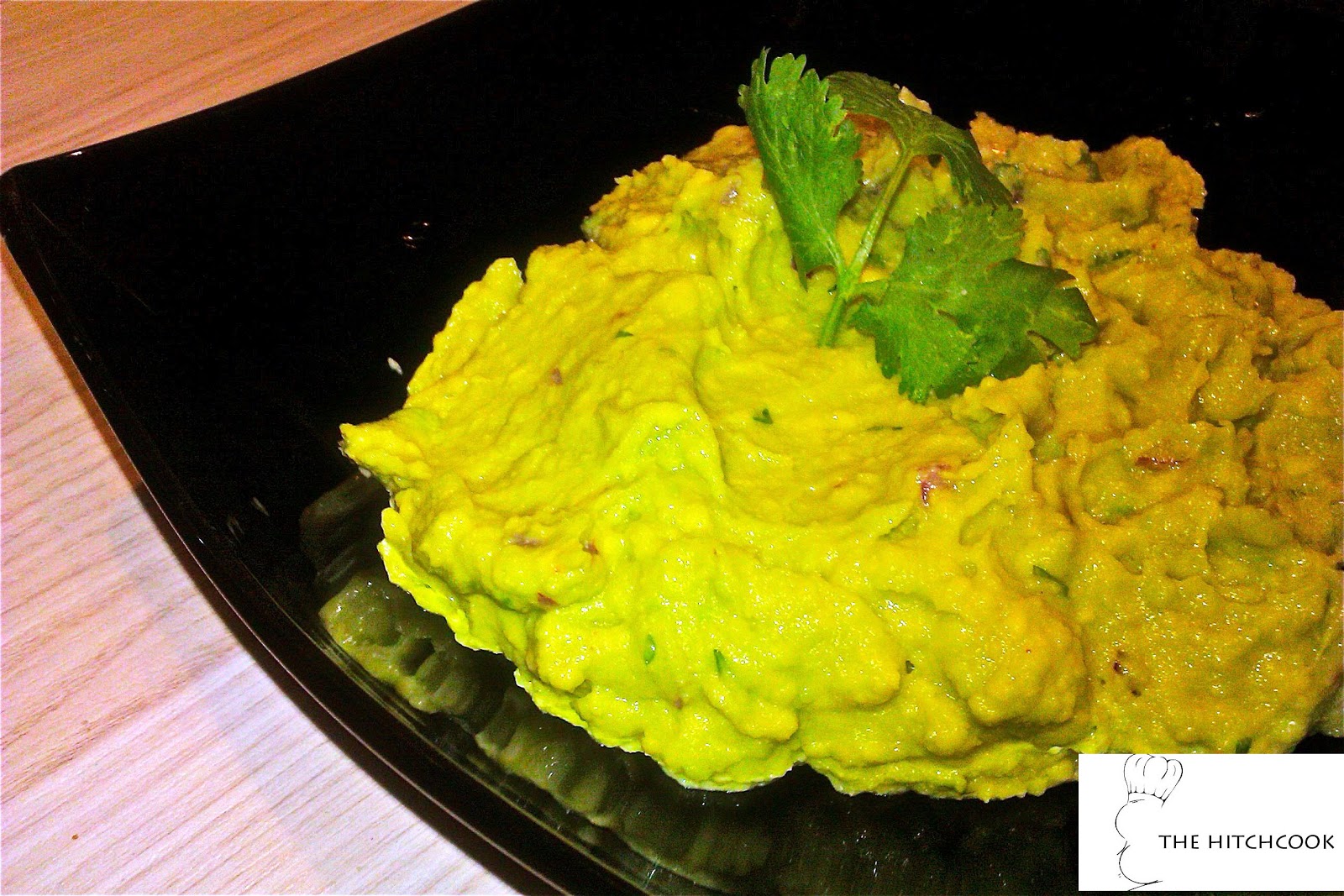 Sacamos la carne de los aguacates y la vamos disponiendo en un plato. Con un tenedor (y no con batidora) vamos aplastando bien. Se trata, o al menos ese es mi gusto, de conseguir una pasta desigual y no muy triturada. Añadimos el zumo de lima, el cilantro (ojo que en exceso domina todo el sabor), la sal, el chili y la cebolleta muy picada. Mezclamos todo bien y decoramos con una hoja de cilantro.