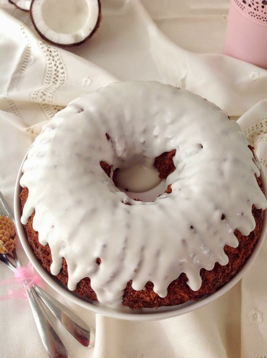 Este espectacular pastel de nombre impronunciable, nos lo prepara Pattys Cake con una elaboración en la que se mezclan azúcar, aceites y huevos y añadiremos un puré de platanos, piña y coco triturados. Mezclaremos con harina y levadura. Se hornea en un molde de bundt cake que le da esta preciosa forma y adornamos con un frosting de queso crema. ¡Maravilloso!