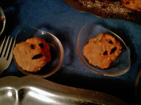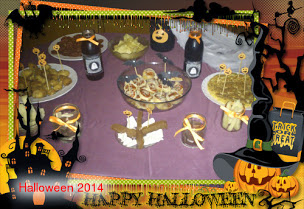 También podemos hacerlo relacionado con las calabazas. Yo lo ttenía todo conjuntado pero un imprevisto de última hora me estropeó el mantel y tuve qie poner uno que no pegaba,jajaja, cosas del directo.