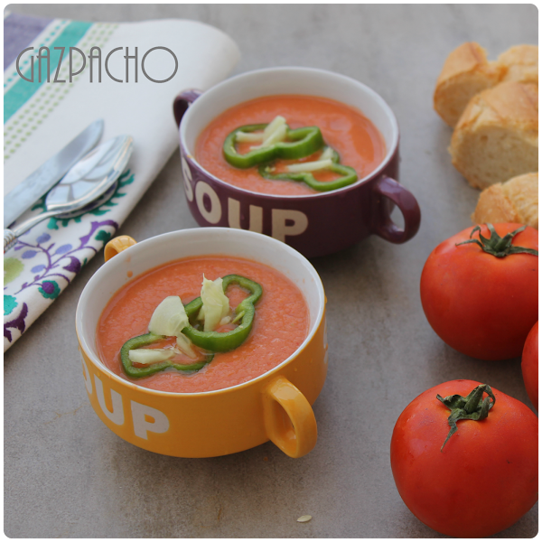 De las llamadas sopas frías sin duda las más populares son el gazpacho y la vichyssoise, por conocidas y por lo buenas que están; se diferencian no sólo por los vegetales empleados sino porque la vichyssoise se elabora hirviendo y triturando los ingredientes y el gazpacho se elabora en crudo. De nuestro gazpacho, que es la sopa que hoy os propongo, hay tantas variantes como españoles (por lo menos ...