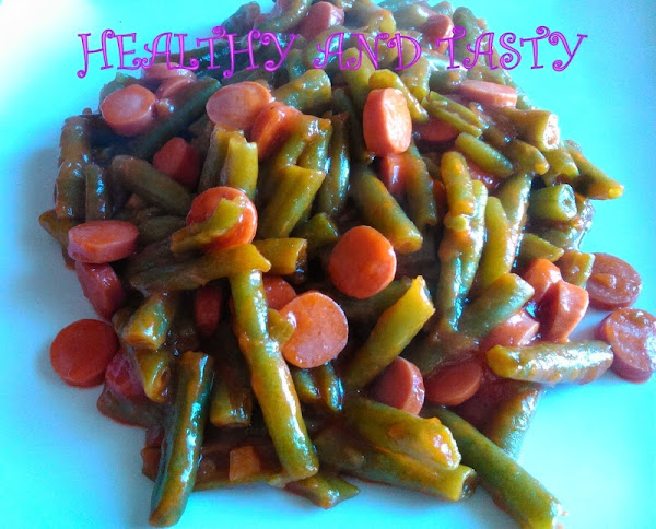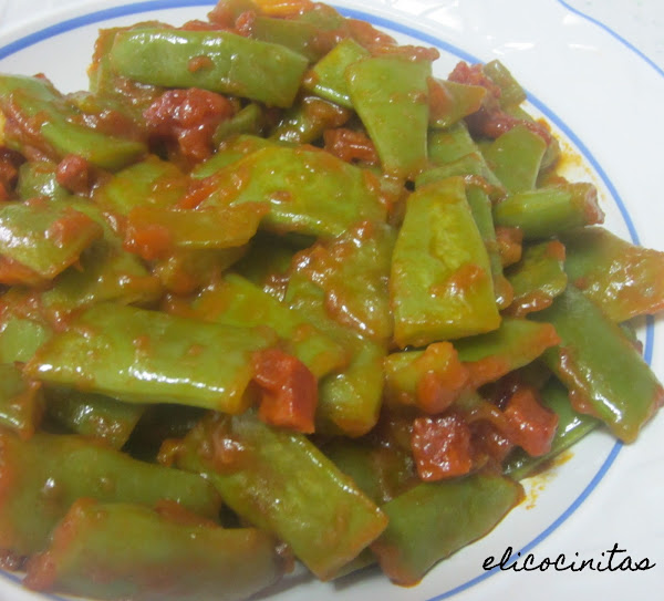 Ahora incorporamos las judías al tomate, removemos bien y dejamos cocinar todo junto unos minutos.