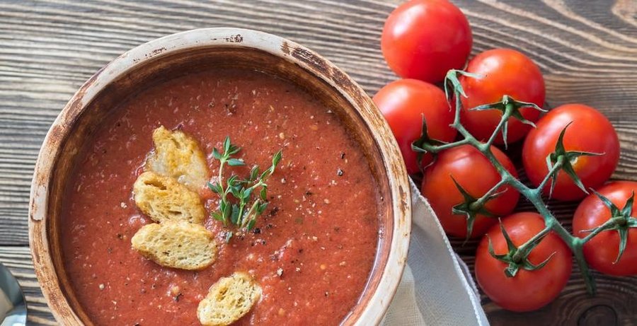 Esta comida típica española se compone de tomates, pimientos, cebolla, ajo, pan, aceite de oliva y vinagre. Esta comida es una excelente fuente de antioxidantes y vitaminas.