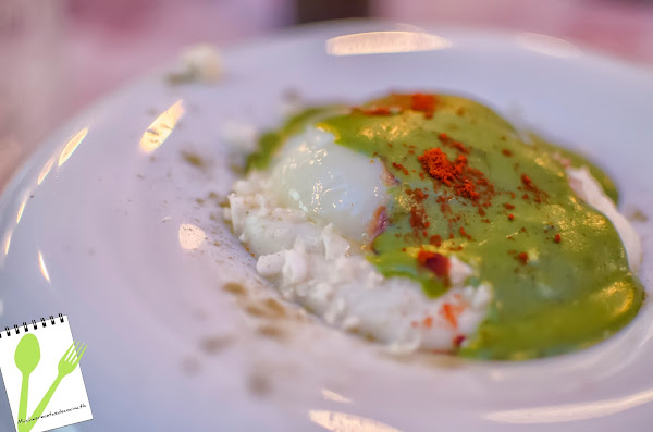 En la base, un cuscus de coliflor, perfecto, huevo poché de cocción impecable, trozos de jamón y una crema de brocoli ... un diez al plato, sobre todo cuando ves a tu amigo, al que no le gusta nada la coliflor, repelando el plato.