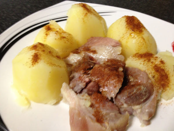 Echamos el pimentón dulce o picante al lacón y un chorrito de aceite de oliva.