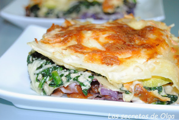 Holaaaaaaa! Aquí estoy de nuevo con una receta de verduras.¿Qué os parece esta deliciosa lasaña de pollo y verduras?Esta lasaña lleva tantas verduras como habían en el cajón de la nevera, todas ellas de temporada como es la berenjena, el calabacín, zanahoria, pimiento verdeEl secreto de esta deliciosa lasaña es el pochado de las verduras, pausado y a fuego bajo. Lasaña de pollo y verduras Impr ...