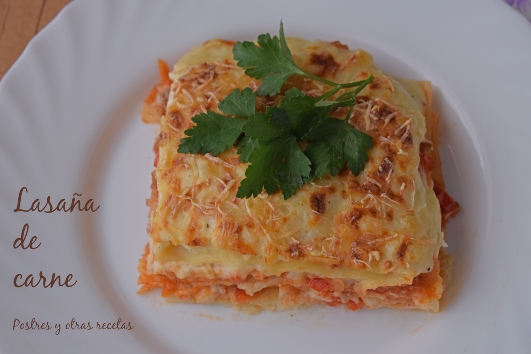 Carne de avestruz 100 gr. tomate 1/2 unidades cebolla 1/2 unidades queso mozzarella 25 gr. queso parmesano 25 gr. espinacas 50 gr. láminas de lasañaHierva las láminas de lasaña en abundante agua con un chorrito de aceite y sal. Sofría la carne junto a la cebolla picada y el tomate. Haga un bechamel espesa con el parmesano y añada las espinacas. En el recipiente, ponga primero una capa de carne y cúbrala con láminas de lasaña, ponga otra capa de salsa de espinacas y cubra nuevamente con lasaña. Repita la operación y acabe la última capa con lasaña. Cúbralo con mozzarella y gratínelo durante unos minutos.