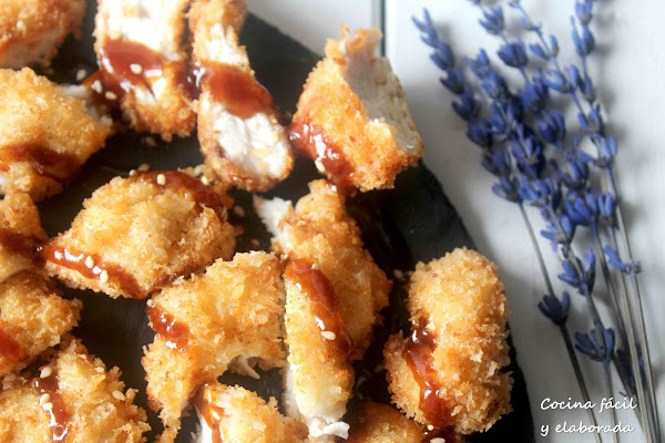 Parece mentira que en nuestro dos años de blog solo hayamos puesto una receta, bueno pues queremos compartir con vosotros otra receta de pollo muy fácil y perfecta para hacer con niños.