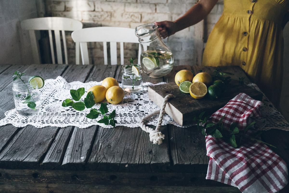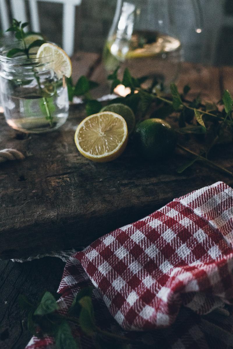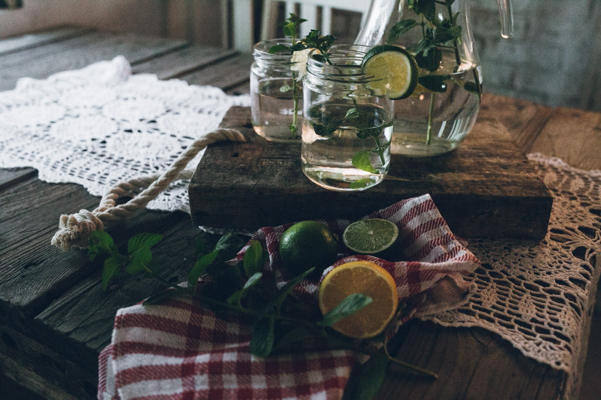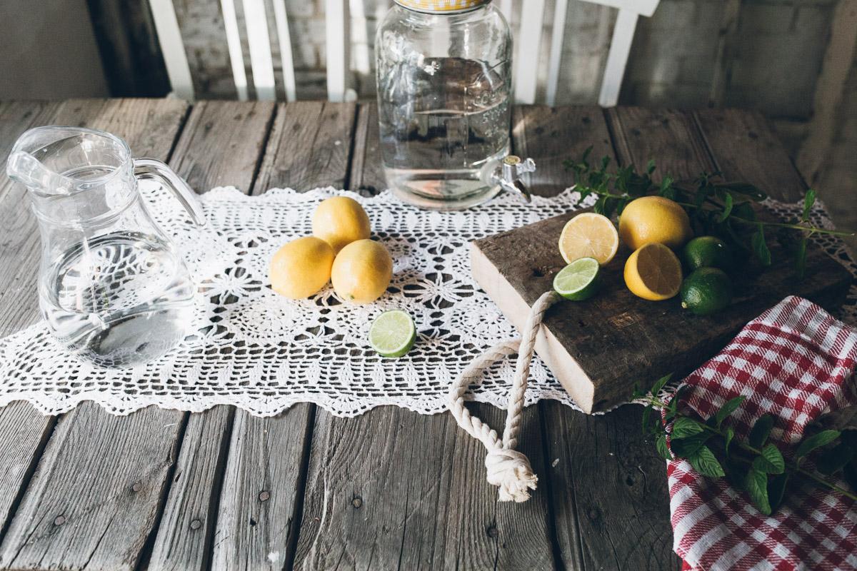 Ingredientes: Agua, hielo, hierbabuena, lima, limones, rallador.