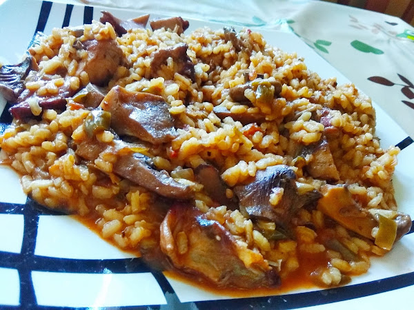 LOMO EN SALSA CON PATATAS PANADERAS Y ARROZ ¿*? INGREDIENTES ¿*?¿*?¿*?¿*? 1 kl de lomo 1 ñora 1/2 vaso de vino dulce ( canasta ) 1 puerro 1/2 cebolla 1 tetabrik de tomate natural ( orlando ) 1 cucharilla de azúcar 1 pera caldo casero, o concentrado un puñado de dátiles sal , aceite , pimienta molida ELABORACIÓN ¿*?¿*?¿*?¿*? Cortamos el lomo y salpimentamos, ponemos aceite en una perola y sellamos el lomo ( reservar ) en ese mismo aceite echamos el vino y dejamos evaporar apartamos y se lo echamos encima del lomo, en la misma perola volvemos a echar aceite y sofreímos la zanahoria el puerro la cebolla y la ñora a fuego suave y el tetabrik de tomate apartamos y trituramos , esta salsa la volvemos a poner en la perola y el lomo con el caldo que tiene del vino , le ponemos la cucharilla de azúcar el caldo que se vea que necesita sal la pera muy picadita y los dátiles , dejar cocer a fuego suave hasta que la carne este tierna ( Acompañar con patatas panaderas ) sofreímos un pimiento verde y una cebolla, a continuación ponemos las patatas cortadas en redondo todo esto lo sofreímos un poco , después pasamos a una bandeja de horno le echamos un poco de aceite por encima con un poco de tomillo o orégano y dejamos que se hagan las patatas. cocemos el arroz con una pastilla de avecren, cuando este cocido apartamos lo colamos , en una sartén picamos ajos muy menuditos y jamón serrano también muy picadito sofreímos bien y después le echamos el arroz y seguimos sofriendo hasta que este bien ,para acompañar el plato de lomo en salsa, queda muy sabroso este plato ¿*?¿*?¿*?¿*?¿*?¿*?¿*?¿*?¿*?¿*?¿*?¿*?¿*?¿*?