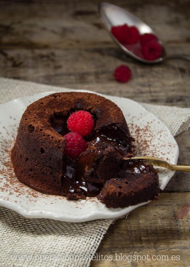De esta postre te enamora todo. Por un lado el bollito de chocolate, templado, esponjoso... Y por otro, el irresistible relleno líquido también, como no, de chocolate, que lo convierte en un placer sin igual. Conseguir esta conjunción líquido-sólido, tiene su misterio, pero no te costará nada descifrarlo con esta receta del blog Operación Pastelito.