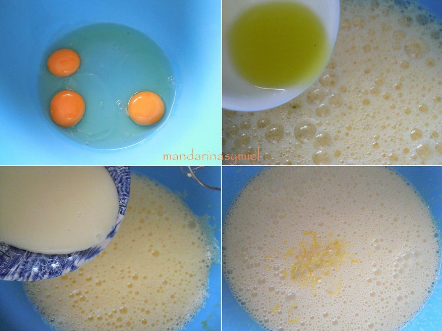Añade la leche condensada y la ralladura de la naranja, sigue batiendo hasta que esté esponjoso.