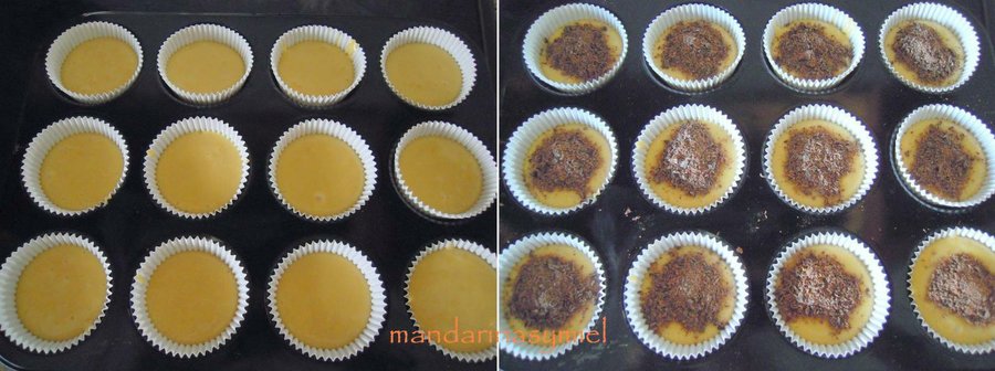 Rellena hasta la mitad, los moldes de magdalenas que tengas preparados.