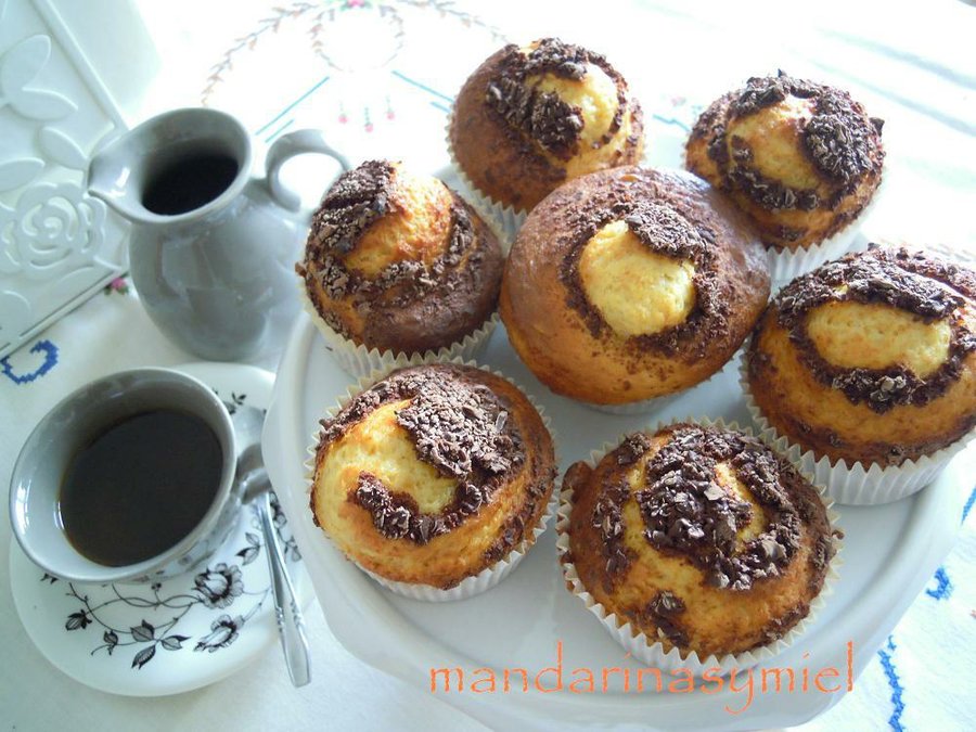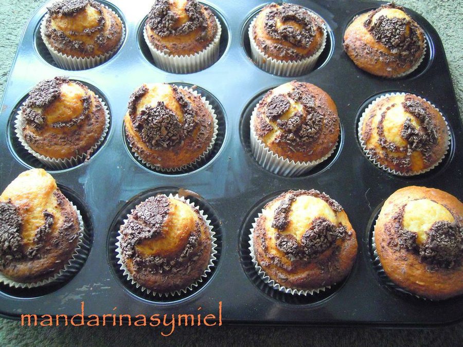 Espolvorea con un poco más de chocolate y mete en el horno precalentado a 200º unos 15 o 18 minutos, depende de tu horno. Ten cuidado de que no se te quemen.